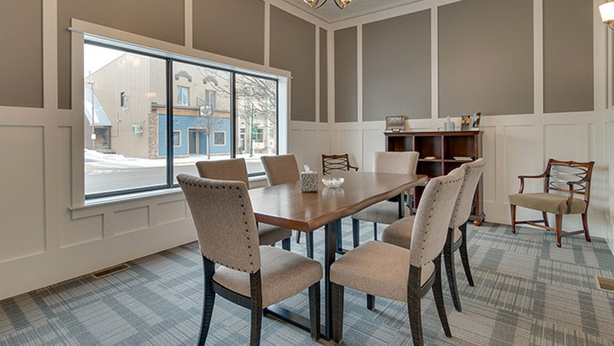 Located in the center of town on Main Street, our funeral home in Manton, MI is simple to find and conveniently located near several cemeteries including Fairview Cemetery, Greenwood Cemetery, Liberty Township Cemetery, Caldwell Cemetery, and Greenwood Township Cemetery. This location became a part of the Holdship Family of Funeral Homes in 2013 and has a clean, modern aesthetic with accents of craftsmanship. All rooms in our Manton funeral home are bright and spacious, allowing flexibility in their use by families.